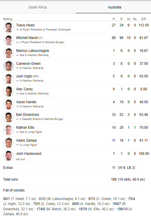The Australian men’s cricket team showed depth in batting and bowling, while the South African National Cricket team showed the spirit of the match to the end.